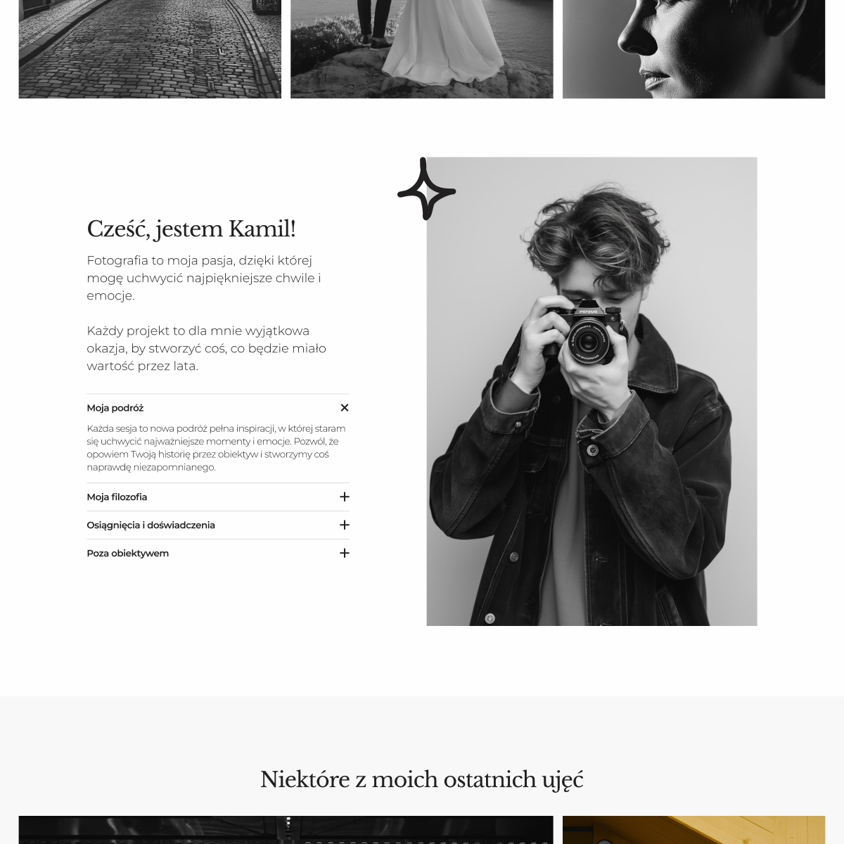 - Galeria prac lub projektów z dużymi, estetycznymi zdjęciami